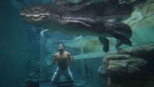 Công viên cá sấu ở Darwin có những "chiếc lồng tử thần" - chiếc lồng thủy tinh chìm dưới nước. Du khách sẽ ở bên trong, còn xung quanh là những chú cá sấu nước mặn khổng lồ của Úc có khối lượng lên tới 800kg, những thợ lặn lão luyện dưới nước.